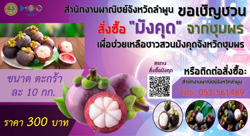 พาณิชย์ลำพูน เชิญสั่งซื้อมังคุด 10โล300บาท เพื่อช่วยเหลือชาวชุมพร โทร.091-8542421