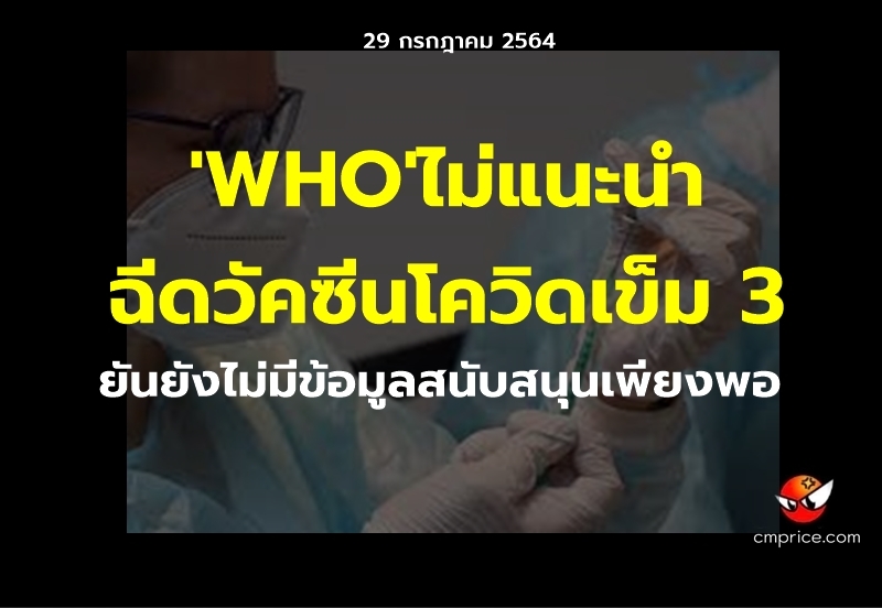 'WHO'ไม่แนะนำฉีดวัคซีนโควิดเข็ม 3 ยันยังไม่มีข้อมูลสนับสนุนเพียงพอ ถ้าจำเป็นให้ฉีดกลุ่มเสี่ยงก่อน
