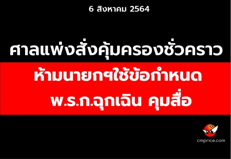 | • ศาลแพ่งสั่งคุ้มครองชั่วคราว ห้ามนายกฯใช้ข้อกำหนด พ.ร.ก.ฉุกเฉิน คุมสื่อ |