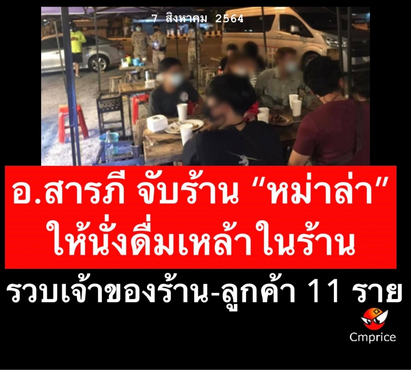 ศปก.อ.สารภี จับร้านหม่าล่า ต.โชยสถาน ปล่อยให้นักดื่มนั่งดื่มแอลกอฮอล์ในบริเวณร้าน รวบเจ้าของร้าน-ลูกค้า 11 ราย ส่งดำเนินคดี