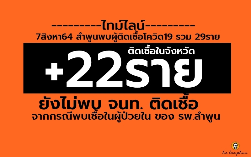 วันที่ 7 สิงหา 64 ลำพูน พบผู้ติดเชื้อรายใหม่จำนวน 29ราย เป็นการติดเชือในจังหวัด 22ราย มาจากจังหวัดเสี่ยง 3ราย  โครงการรับคนลำพูนกลับบ้าน 4ราย