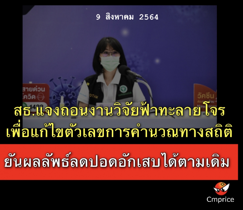 กระทรวงสาธารณสุขยันผลวิจัยฟ้าทะลายโจรช่วยลดปอดอักเสบผู้ป่วยโควิดอาการเล็กน้อย ส่วนการถอนงานวิจัยจากการตีพิมพ์ มีข้อผิดพลาดการคำนวณตัวเลขสถิติ 1 จุด ไม่กระทบผลวิจัยหลัก ชี้เป็นความซื่อสัตย์ของนักวิจัยต้องนำมาแก้ไขเพื่อส่งตีพิมพ์ใหม่ ไม่ได้ถูกวารสารปฏิเสธหรือส่งกลับคืน นโยบายใช้ฟ้าทะลายโจรยังคงเดิม
