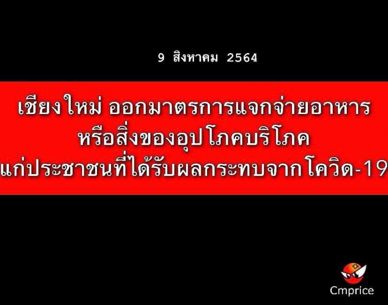 จังหวัดเชียงใหม่ ออกมาตรการแจกจ่ายอาหารหรือสิ่งของอุปโภคบริโภคแก่ประชาชนที่ได้รับผลกระทบจากสถานการณ์การแพร่ระบาดของโรคติดเชื้อโควิด–19