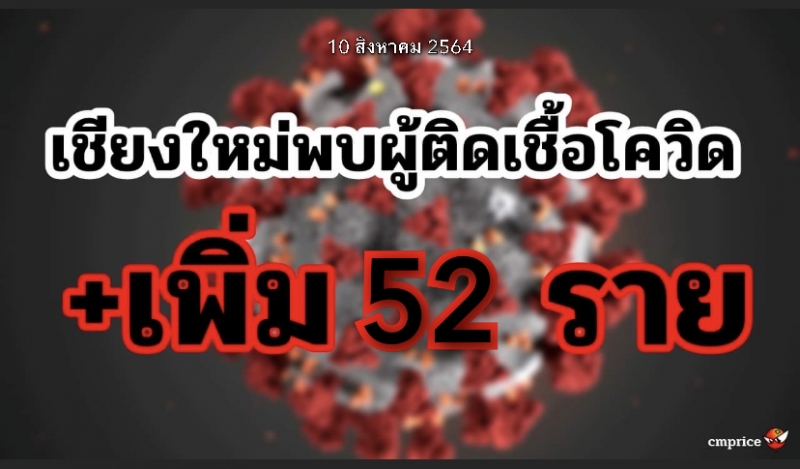 จังหวัดเชียงใหม่พบผู้ติดเชื้อรายใหม่ จำนวน 52 ราย โดยเป็นผู้ติดเชื้อในจังหวัด 14 ราย และเป็นผู้ติดเชื้อจากต่างจังหวัดอีก 38 ราย
