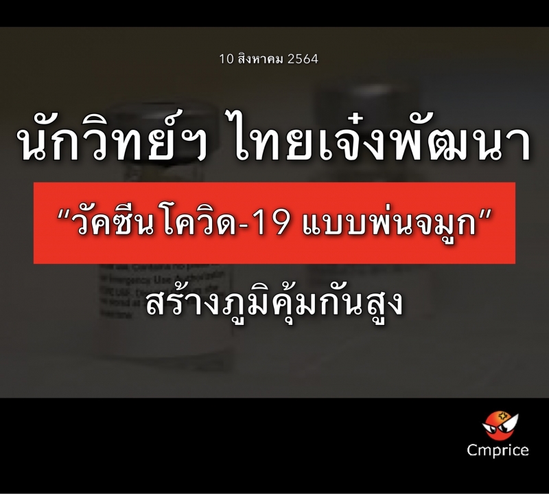 | • นักวิทย์ฯ ไทยเจ๋ง พัฒนา วัคซีนโควิด-19 แบบพ่นจมูก สร้างภูมิคุ้มกันสูง |