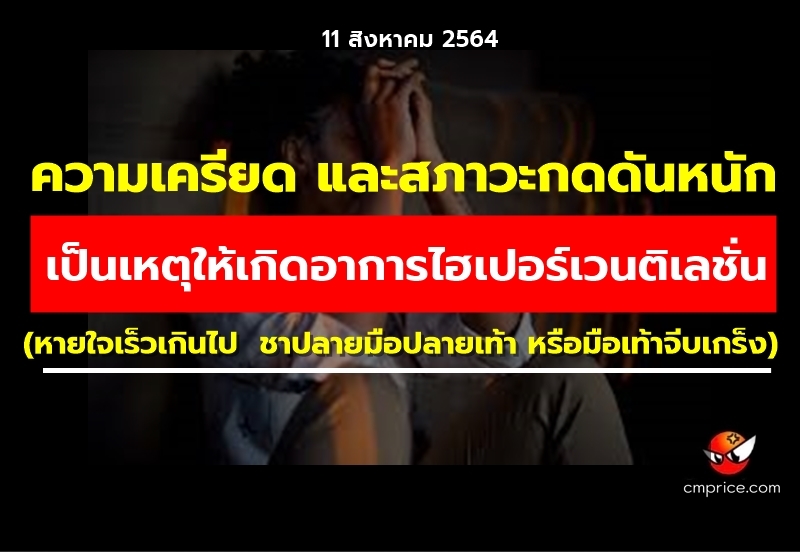 กรมการแพทย์เตือน ความเครียด และสภาวะกดดันหนัก เป็นเหตุให้เกิดอาการไฮเปอร์เวนติเลชั่น(หายใจเร็วเกินไป ชาปลายมือปลายเท้า หรือมือเท้าจีบเกร็ง)