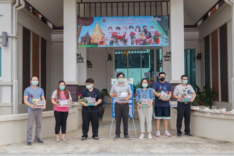 ทั้งนี้ได้มอบดอกไม้ กล่องเครื่องดื่มจากโรงพยาบาลลำพูน และอาหารมื้อเย็นมื้อแรกที่ลำพูนจาก นายวรยุทธ เนาวรัตน์ ผู้ว่าราชการจังหวัดลำพูน ประกอบไปด้วย ข้าวสวย ไข่ยัดใส้ หมูมะนาว แกงส้มชะอมกุ้ง ขนมหวาน เปียกปูนอ่อน ผลไม้รวม จากร้านอาหารครัวคุณกุ้ง หลังเสร็จสิ้นจากการปฏิบัติภารกิจ ปฏิบัติงานร่วมดูแลรักษาผู้ป่วยโควิด-19 ปฏิบัติงานคัดกรอง ฉีดวัคซีน กลุ่มเสี่ยงในชุมชนกรุงเทพมหานคร ระหว่างวันที่ 4-11 สิงหาคม 2564 และ เข้า Local Quarantine ณ โรงแรม เดอ ภุญชัย โฮมเทล อำเภอเมือง จังหวัดลำพูน เป็นเวลา 7 วัน ก่อนกลับไปปฏิบัติหน้าที่