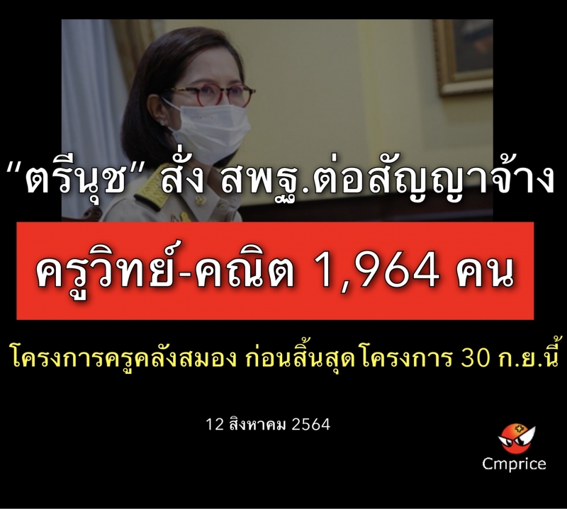 | • ตรีนุช สั่ง สพฐ.ต่อสัญญาจ้างครูวิทย์-คณิตโครงการครูคลังสมอง 1,964 คน |