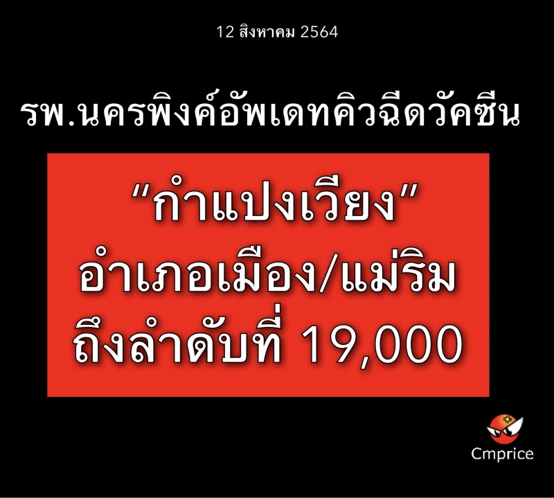 | • รพ.นครพิงค์อัพเดท คิวฉีดวัคซีน กำแปงเวียงอำเภอเมือง/แม่ริม ถึงลำดับที่ 19,000 |