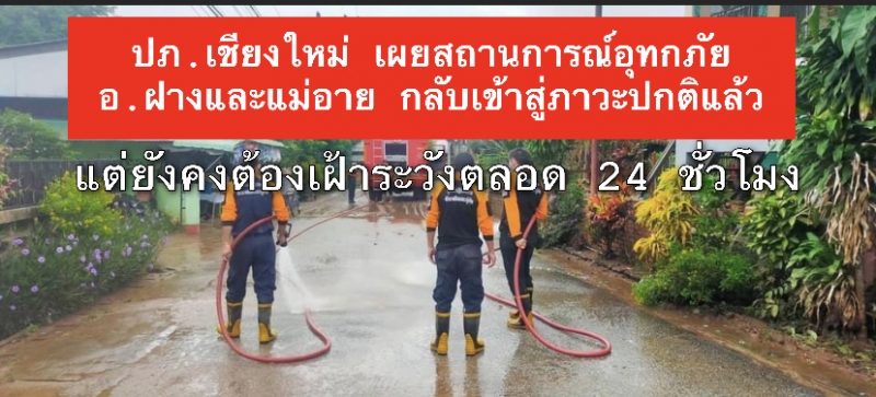 ปภ.เชียงใหม่ เผยสถานการณ์อุทกภัยในอำเภอฝางและแม่อายกลับเข้าสู่ภาวะปกติแล้ว แต่ยังคงต้องเฝ้าระวังตลอด 24 ชั่วโมง