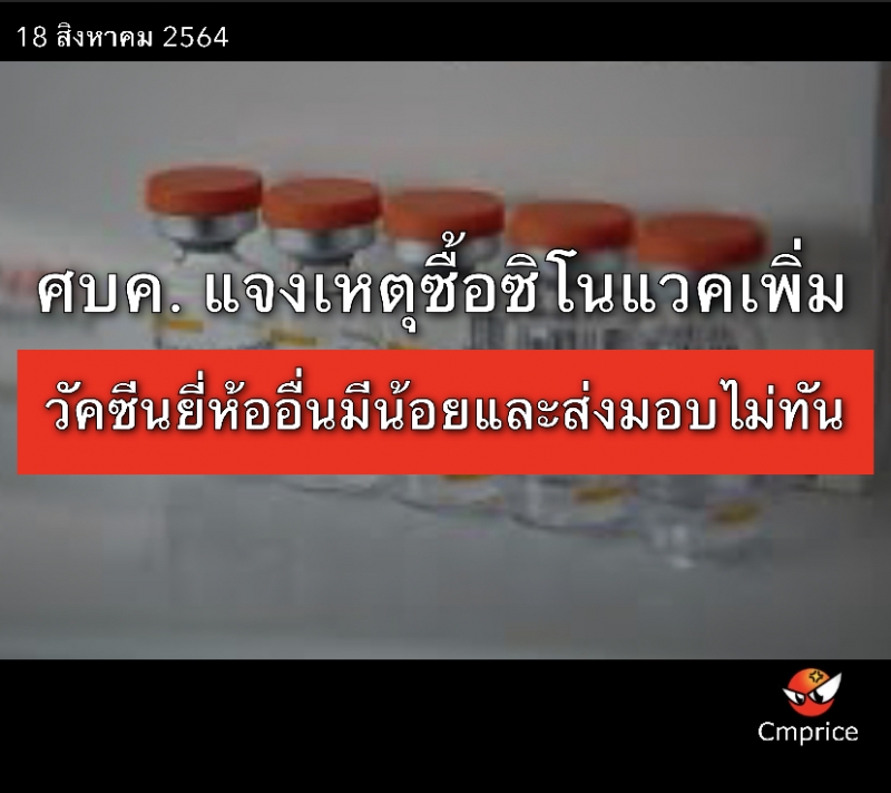 | • ศบค. แจงเหตุซื้อซิโนแวคเพิ่ม เผยวัคซีนยี่ห้ออื่นมีน้อยและส่งมอบไม่ทัน |