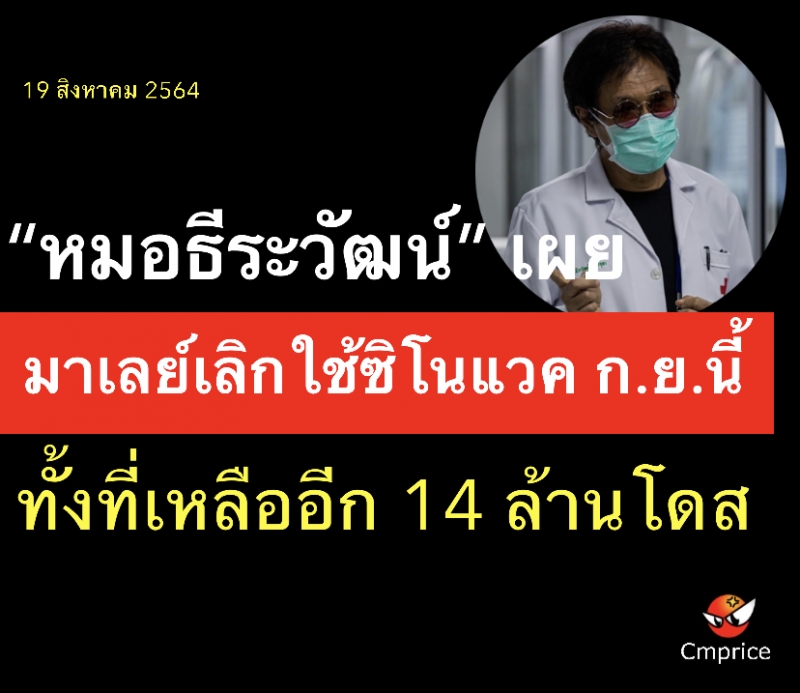 | • 'หมอธีระวัฒน์' เผยมาเลย์เลิกใช้ซิโนแวค ก.ย.นี้ ทั้งที่เหลืออีก 14 ล้านโดส |