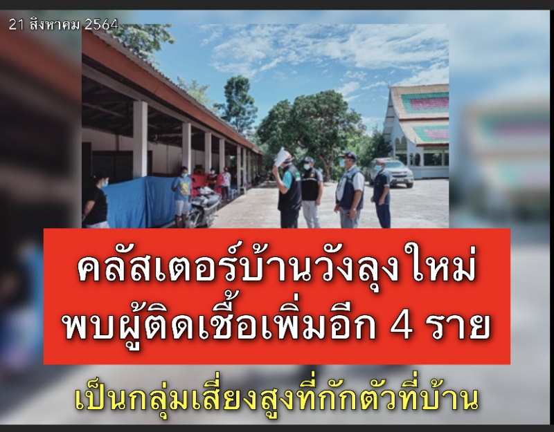| • คลัสเตอร์บ้านวังลุงใหม่ พบผู้ติดเชื้อเพิ่มอีก 4 ราย เป็นกลุ่มเสี่ยงสูงที่ได้กักตัวที่บ้าน |