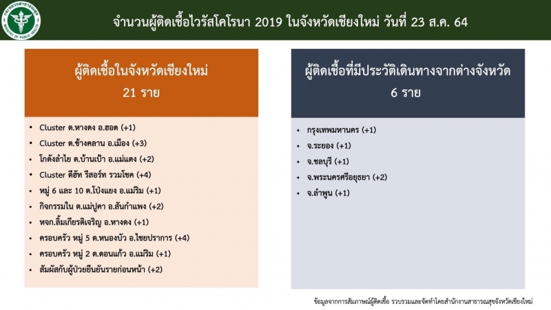 ที่มา :สำนักงานประชาสัมพันธ์จังหวัดเชียงใหม่ 23 สิงหาคม 2564