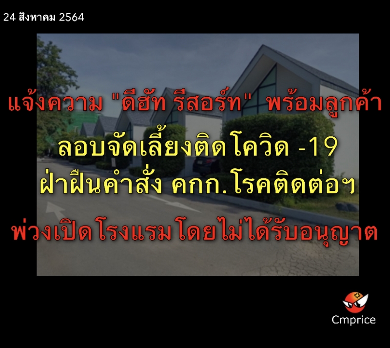 ศปก.อ. สันทราย แจ้งความ "ดีฮัท รีสอร์ท" พร้อมลูกค้า ลอบจัดเลี้ยงติดโควิด ฝ่าฝืนคำสั่ง คกก.โรคติดต่อฯ พ่วงเปิดโรงแรมโดยไม่ได้รับอนุญาต