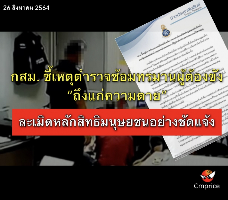 กสม. ชี้เหตุตำรวจซ้อมทรมานผู้ต้องขังถึงแก่ความตายละเมิดหลักสิทธิมนุษยชนอย่างชัดแจ้ง เรียกร้องเร่งดำเนินการ 3 ข้อ