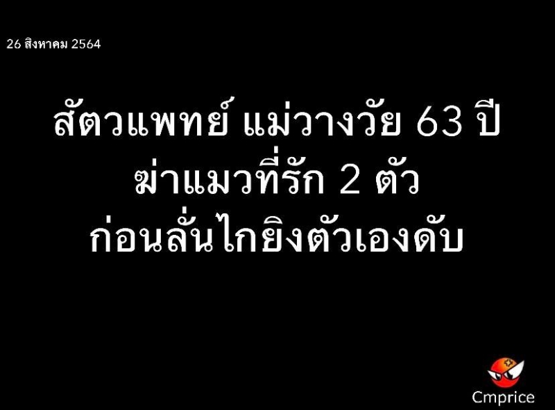 สัตวแพทย์ แม่วางวัย 63 ปี ฆ่าแมว 2 ตัว ก่อนลั่นไกยิงตัวเองดับ ก่อนตายส่งแชทหาญาติ บอกมีโรคประจำตัว ไม่อยากเป็นภาระ