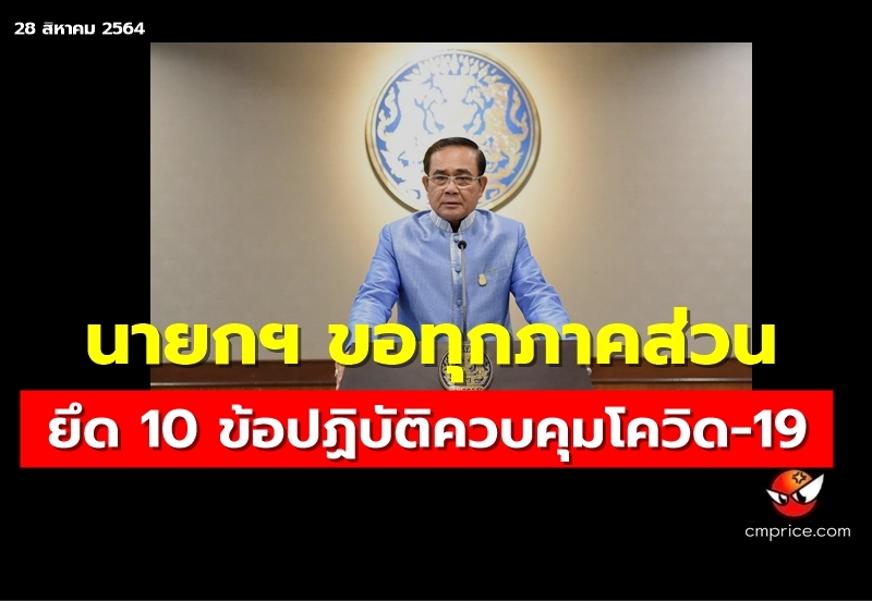 พล.อ.ประยุทธ์ นายกรัฐมนตรี โพสต์เฟซบุ๊ก กำชับตั้งแต่ 1 ก.ย. 64 นี้ ขอให้ทุกภาคส่วนยึดข้อปฏิบัติการควบคุมโควิด 10 ข้อ โดยมีข้อความดังนี้