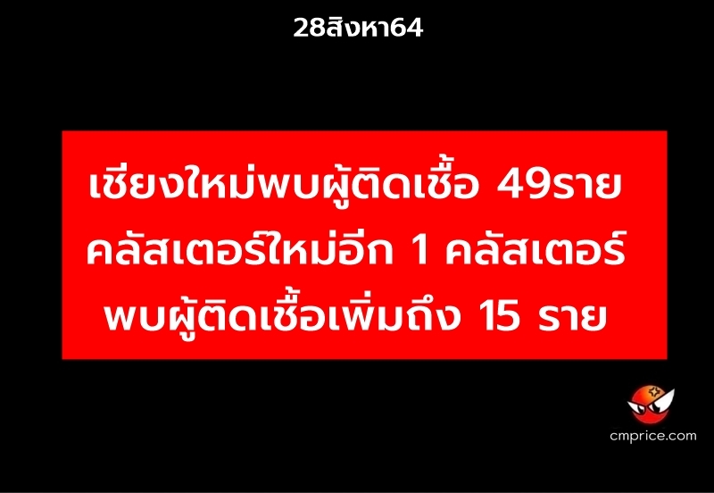 วันนี้ (28 ส.ค. 64) ดร.ทรงยศ คำชัย หัวหน้ากลุ่มงานควบคุมโรคติดต่อ สำนักงานสาธารณสุขจังหวัดเชียงใหม่ เปิดเผยถึงสถานการณ์การระบาดโรค Covid-19 จังหวัดเชียงใหม่ประจำวัน ว่า วันนี้จังหวัดเชียงใหม่พบผู้ติดเชื้อรายใหม่จำนวน 49 ราย ส่วนใหญ่เป็นผู้ติดเชื้อในจังหวัด ทำให้ยอดผู้ติดเชื้อสะสม 6,829 ราย