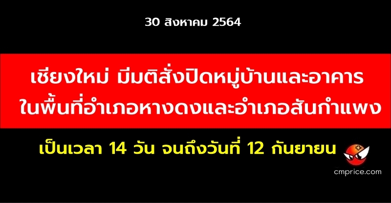 คณะกรรมการโรคติดต่อจังหวัดเชียงใหม่ มีมติสั่งปิดหมู่บ้านและอาคาร ในพื้นที่อำเภอหางดงและอำเภอสันกำแพง เป็นเวลา 14 วัน จนถึงวันที่ 12 กันยายน 2564 หลังพบการแพร่ระบาดในชุมชน กำชับผู้สัมผัสเสี่ยงต้องตรวจหาเชื้อโควิด-19 ทุกคน และกักตัวอย่างเคร่งครัด