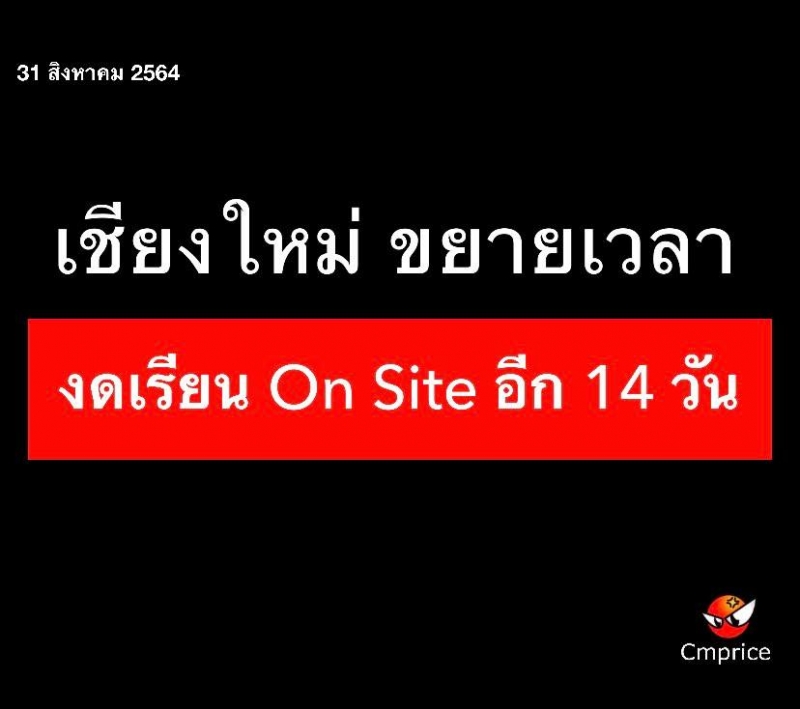 จังหวัดเชียงใหม่ ขยายเวลางดจัดการเรียนการสอนแบบ On Site ไปอีก 14 วัน เว้นแต่มีสถานศึกษาผ่านการประเมินจากสำนักงานศึกษาธิการจังหวัด และสำนักงานป้องกันควบคุมโรคที่ 1 เชียงใหม่ ว่า “ปลอดภัย” ซึ่งจะต้องมีแผนเผชิญเหตุรองรับสถานการณ์ และมีมาตรการที่เข้มงวด