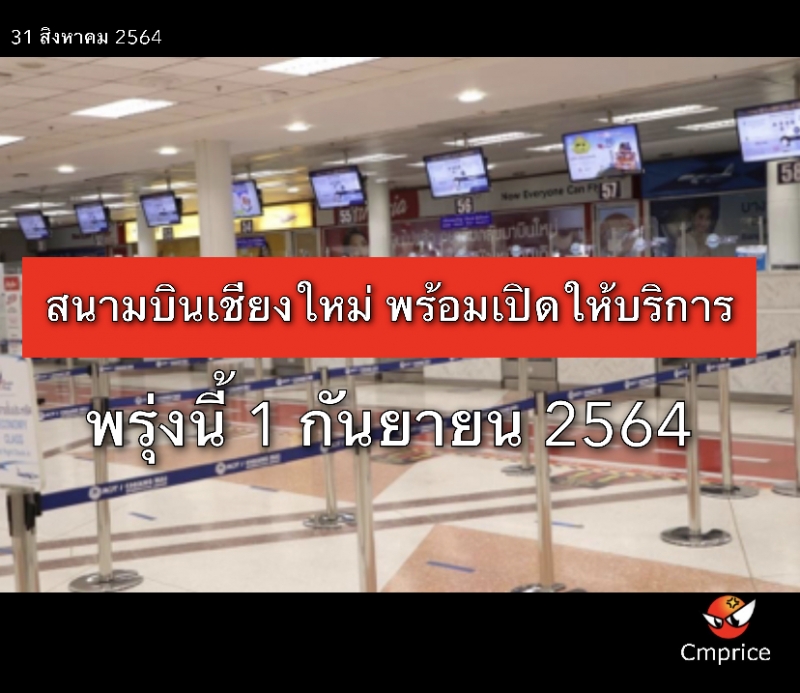 | • ท่าอากาศยานเชียงใหม่ พร้อมกลับมาเปิดให้บริการอีกครั้งในวันพรุ่งนี้ (1 กันยายน 2564) |