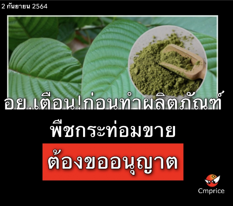 | • อย.เตือน! ก่อนทำผลิตภัณฑ์พืชกระท่อมขาย ต้องขออนุญาต |
