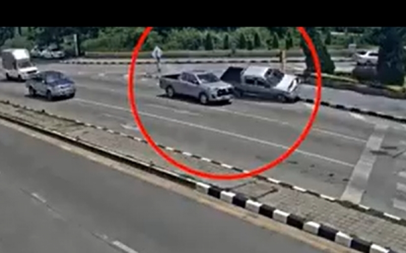 คลิป** กระบะ เฉี่ยวชนกับ กระบะ ปิ้นจะลิ้นเสียหลักตึงสองกัน