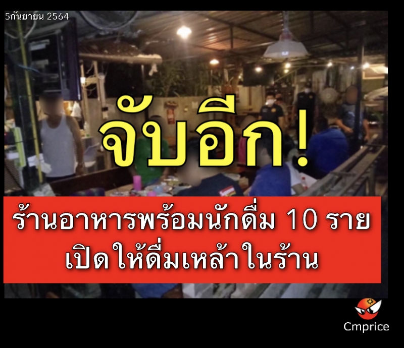 | • จับอีก! ร้านอาหารพร้อมนักดื่ม 10 ราย เปิดให้ดื่มเหล้าในร้าน |