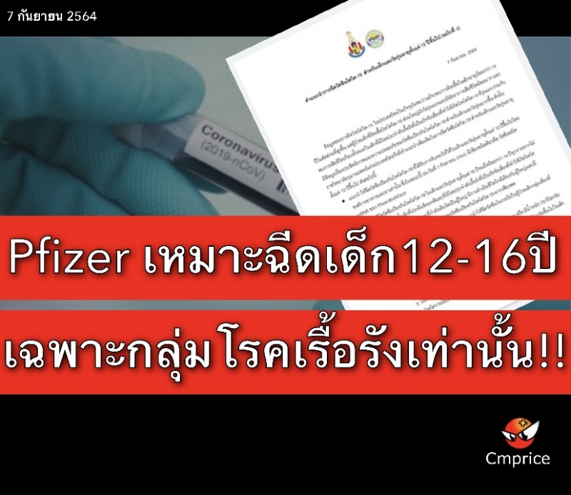| • Pfizer เหมาะฉีดเด็ก12-16เฉพาะกลุ่มโรคเรื้อรัง เท่านั้น!! |