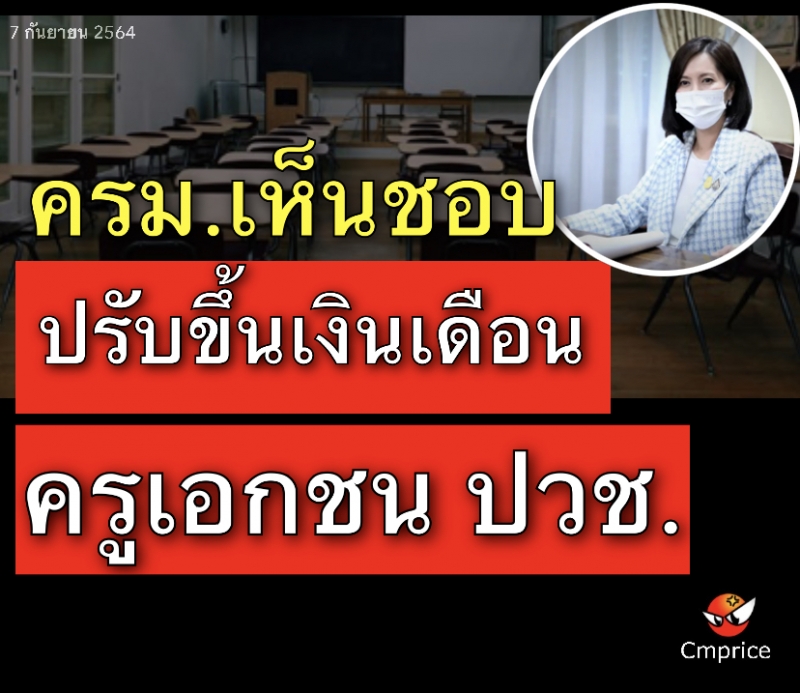 สรุปมติคณะรัฐมนตรี เมื่อวันที่ 7 กันยายน 2564 ที่เกี่ยวข้องกับกระทรวงศึกษาธิการ เห็นชอบการปรับอัตราเงินอุดหนุนรายบุคคล ในส่วนของเงินสมทบเป็นเงินเดือนครูสำหรับนักเรียนในโรงเรียนเอกชน ประเภทอาชีวศึกษา ระดับ ปวช. เพื่อประกันรายได้ครูโรงเรียนเอกชน ให้ได้รับเงินเดือนไม่ต่ำกว่าอัตราขั้นต่ำที่ทางราชการกำหนด ตั้งแต่ปีงบประมาณ พ.ศ.2565