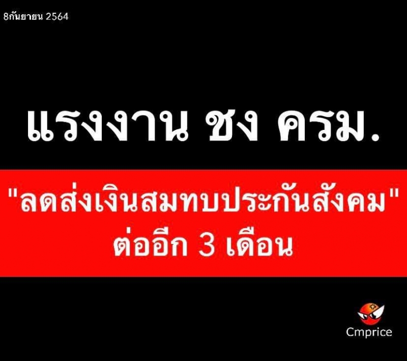 นายสุชาติ ชมกลิ่น รัฐมนตรีว่าการกระทรวงแรงงาน กล่าวว่า บอร์ดประกันสังคม ได้มีมติเห็นชอบลดอัตราเงินสมทบ ปี 2564 อีก 3 เดือน ตั้งแต่เดือนกันยายน-พฤศจิกายน 2564 โดยกำหนดลดอัตราเงินสมทบ ฝ่ายนายจ้าง ในอัตราร้อยละ 2.5 และลูกจ้างผู้ประกันตน มาตรา 33 ในอัตรา ร้อยละ 2.5 และสำหรับผู้ประกันตนมาตรา 39 จัดเก็บในอัตราเดือนละ 235 บาท โดยหลังจากนี้ จะนำเข้าที่ประชุมคณะรัฐมนตรี (ครม.) เพื่อให้เห็นชอบโดยเร็วที่สุด