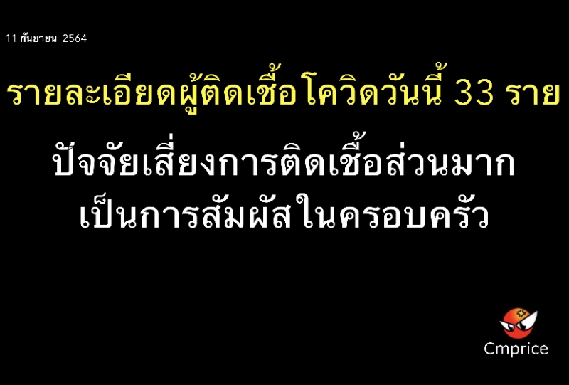 เชียงใหม่ พบผู้ติดเชื้อรายใหม่ 33 ราย ปัจจัยเสี่ยงการติดเชื้อส่วนมากเป็นการสัมผัสในครอบครัว