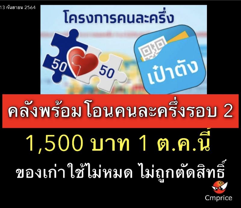 | • 1 ต.ค.นี้ คลังพร้อมโอนคนละครึ่งรอบ 2 จำนวน 1,500 บาท |