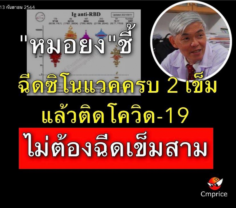 13 กันยายน 2564 นายแพทย์ยง ภู่วรวรรณ หัวหน้าศูนย์เชี่ยวชาญเฉพาะทางด้านไวรัสวิทยาคลินิก ภาควิชากุมารเวชศาสตร์ คณะแพทยศาสตร์ จุฬาลงกรณ์มหาวิทยาลัย โพสต์เฟซบุ๊กมีข้อความดังนี้