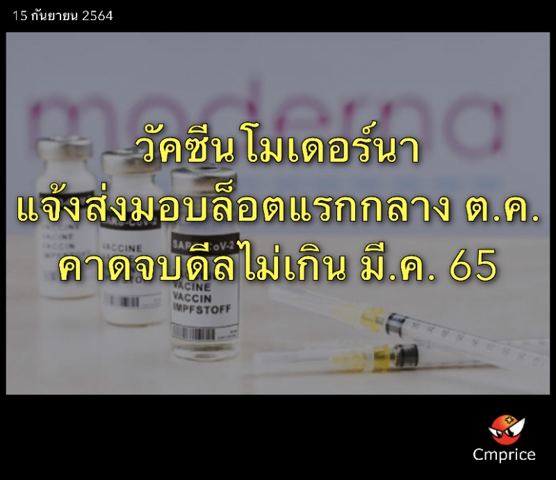 ความคืบหน้าวัคซีนโมเดอร์นา บริษัทซิลลิคฯ แจ้ง ส่งมอบล็อตแรกกลางเดือนตุลาคม ทยอยส่งสัปดาห์ละ 3 แสนกว่าโดส ต่อเนื่องในไตรมาส 4/64 คาดจบดีลไม่เกินมีนาคม 65