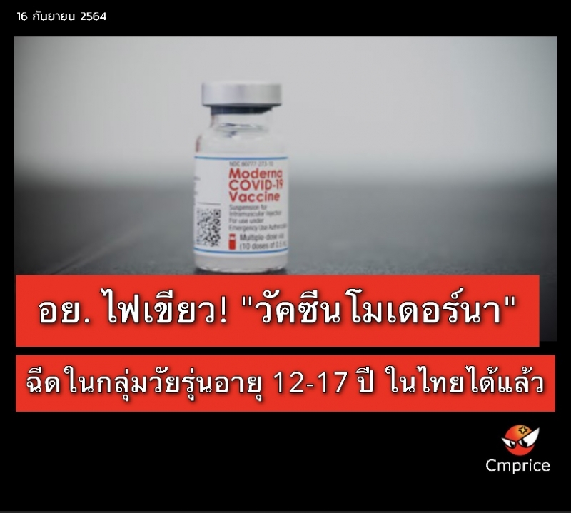 | • อย. ไฟเขียว! "วัคซีนโมเดอร์นา" ฉีดในกลุ่มวัยรุ่นอายุ 12-17 ปี ในไทยได้แล้วขอบคุณ |