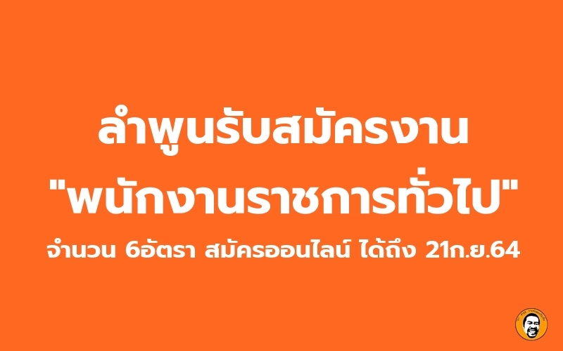 ลำพูนรับสมัครงาน "พนักงานราชการทั่วไป" จำนวน 6อัตรา สมัครออนไลน์ ได้ถึง 21ก.ย.64