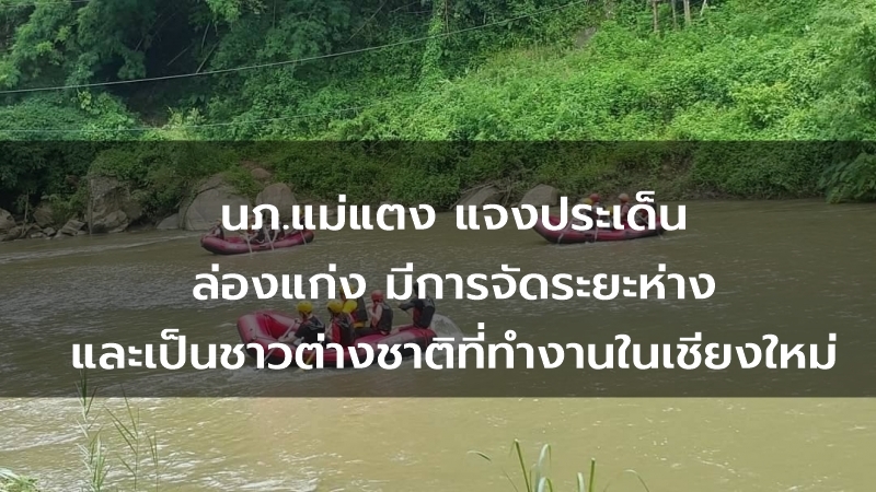 | • นภ.แม่แตง แจงดราม่าล่องแก่ง มีการจัดระยะห่าง และเป็นชาวต่างชาติที่ทำงานในเชียงใหม่ |