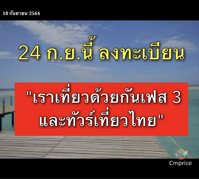 โครงการเราเที่ยวด้วยกัน เฟส3 และโครงการทัวร์เที่ยวไทย จะเปิดให้ลงทะเบียน วันที่ 24 ก.ย.2564 ที่เว็บไซต์ เราเที่ยวด้วยกัน. com/ https://www.xn--12c1bik6bbd8ab6hd1b5jc6jta.com/
