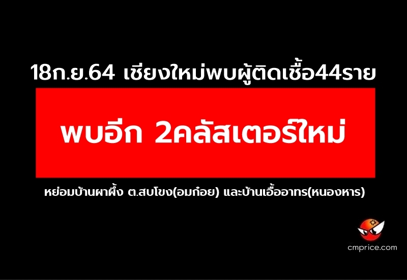 | • เชียงใหม่พบผู้ติดเชื้อ44ราย และพบอีก 2คลัสเตอร์ใหม่ |