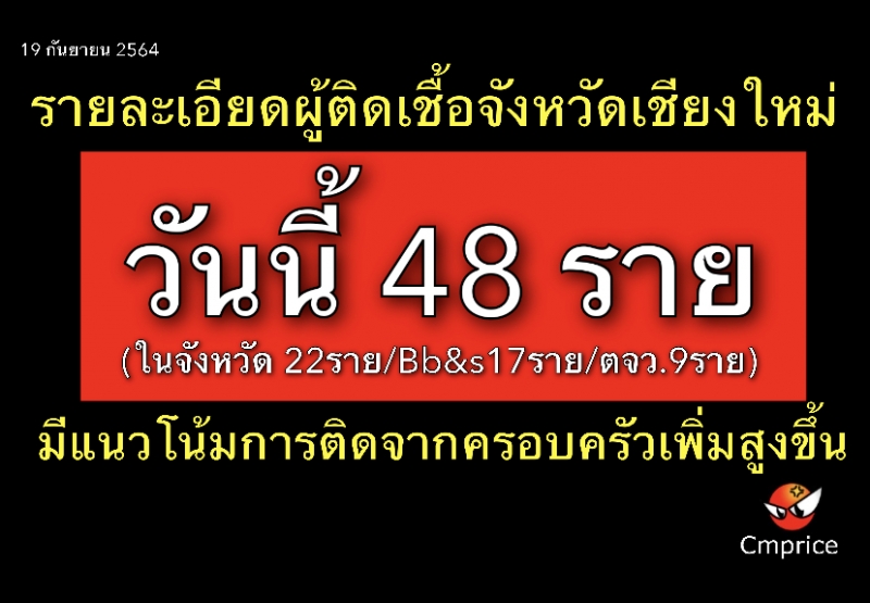 รายละเอียดผู้ติดเชื้อจังหวัดเชียงใหม่วันนี้ 48 ราย มีแนวโน้มการติดจากครอบครัวเพิ่มสูงขึ้น