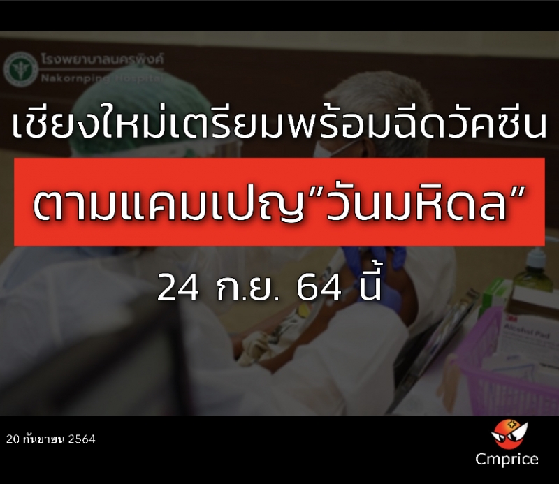 เชียงใหม่เตรียมพร้อมฉีดวัคซีนตามแคมเปญ”วันมหิดล”  24 ก.ย. 64 นี้