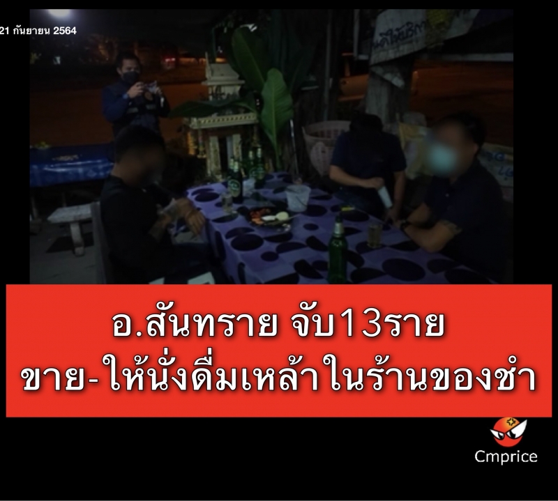 ศปก.อ.สันทราย จับอีกตามร้อง ร้านของชำ 2 แห่ง ขายเครื่องดื่มแอลกอฮอล์ให้ดื่มในร้าน รวบผู้ประกอบการ/นักดื่ม13 ราย ส่งสภ.แม่โจ้ ดำเนินคดี