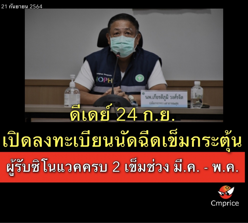ดีเดย์ 24 ก.ย.เปิดลงทะเบียนนัดฉีดเข็มกระตุ้นผู้รับซิโนแวคครบ 2 เข็มช่วง มี.ค. - พ.ค.