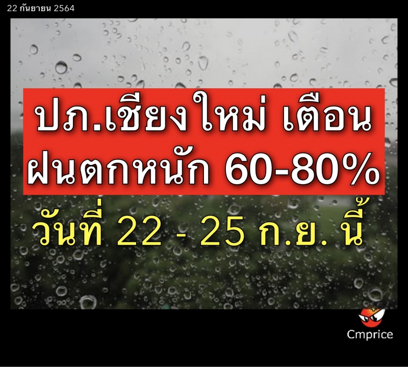 | • ปภ.เชียงใหม่ เตือนฝนตกหนัก 60-80% วันที่ 22 - 25 ก.ย. นี้ |