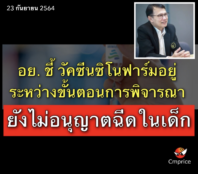 | • อย. ชี้ วัคซีนซิโนฟาร์มอยู่ระหว่างขั้นตอนการพิจารณา ยังไม่อนุญาตให้ฉีดในเด็ก |