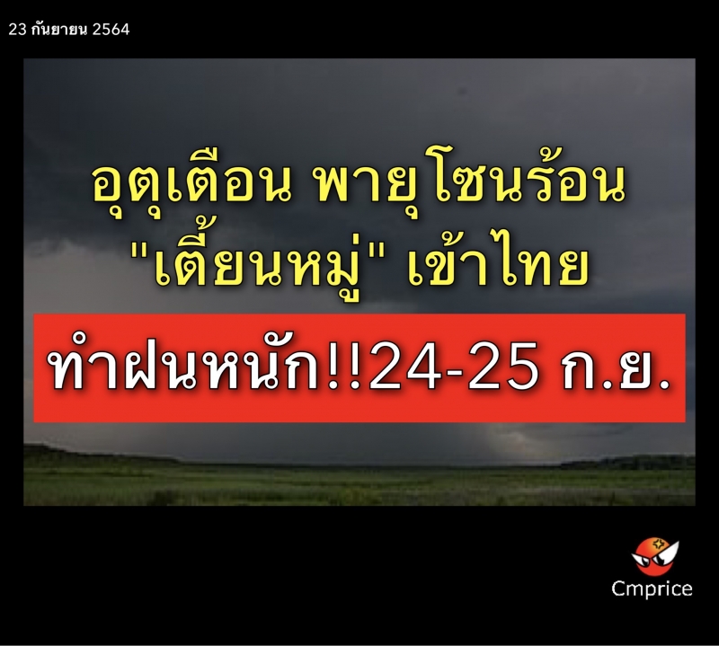 ในวันพรุ่งนี้ (24 ก.ย. 64) หลังจากนั้นจะอ่อนกำลังเป็นดีเปรสชันและหย่อมความกดอากาศต่ำกำลังแรงตามลำดับ และ เคลื่อนตามแนวร่องมรสุมเข้าปกคลุมภาคตะวันออกเฉียงเหนือและภาคกลาง ส่งผลทำให้บริเวณประเทศไทยตอนบนมีฝนเพิ่มมากขึ้นและมีฝนตกหนักถึงหนักมากบางแห่งในภาคเหนือ ภาคตะวันออกเฉียงเหนือ ภาคกลาง ภาคตะวันออก รวมทั้งกรุงเทพมหานครและปริมณฑล ขอให้ประชาชนบริเวณดังกล่าวระวังผลกระทบจากฝนตกหนักและฝนที่ตกสะสมซึ่งอาจทำให้เกิดน้ำท่วมฉับพลัน และน้ำป่าไหลหลากไว้ด้วย