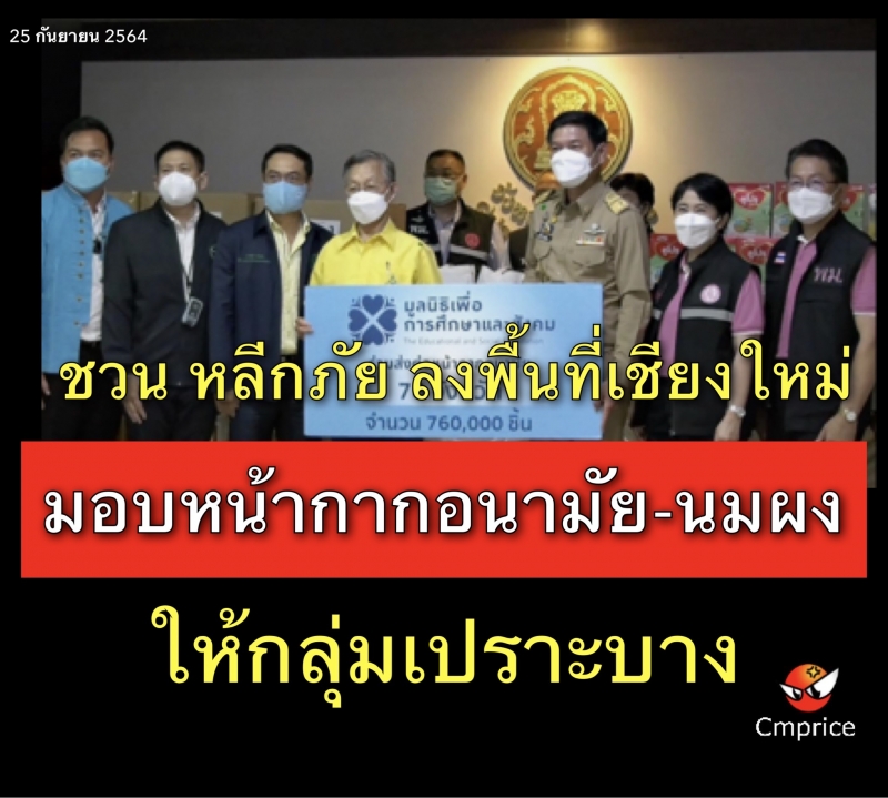 ชวน หลีกภัย ประธานรัฐสภา ในฐานะประธานมูลนิธิเพื่อการศึกษาและสังคม พร้อมคณะตรวจราชการ พื้นที่จังหวัดเชียงใหม่ พร้อมมอบหน้ากากอนามัย หน้ากากเด็ก นมผง แก่กลุ่มเปราะบางในพื้นที่