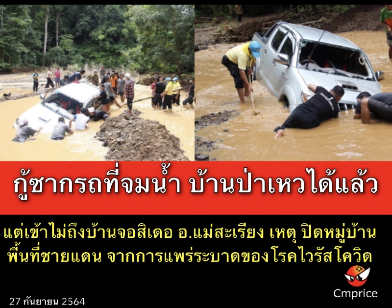 เจ้าหน้าที่ยังไม่สามารถเข้าพื้นที่เพื่อให้การช่วยเหลือเหตุน้ำป่าหลาก บ้านจอสิเดอ ต.แม่คง อ.แม่สะเรียง จ.แม่ฮ่องสอน ได้  หลังหลายหมู่บ้านชายแดน ปิดหมู่บ้าน จากการแพร่ระบาดโควิดส่วนบ้านป่าเหว ช่วยกู้ซากรถที่จมน้ำได้แล้ว ความเสียหายอยู่ระหว่างการสำรวจ